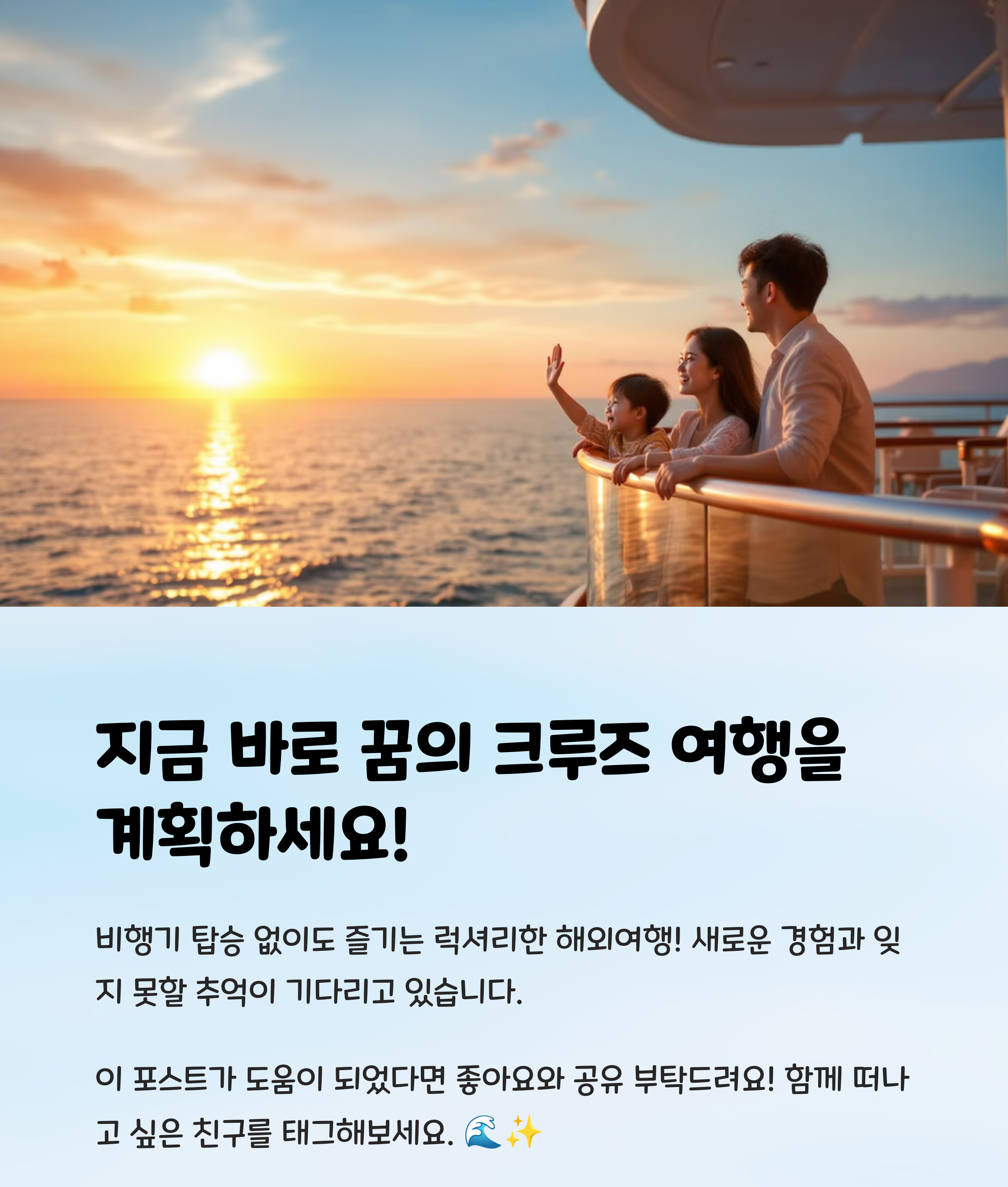 크루즈 여행을 떠나보고 싶으신가요? 혹시 이미 다녀온 경험이 있다면 어떤 노선을 추천하시나요? 댓글로 여러분의 의견을 공유해 주세요!